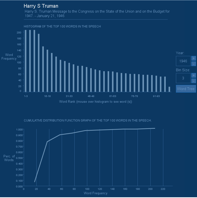 histogram (the range of the bin size is 1-10). The “Word Tree” button is used to view a tree version of the